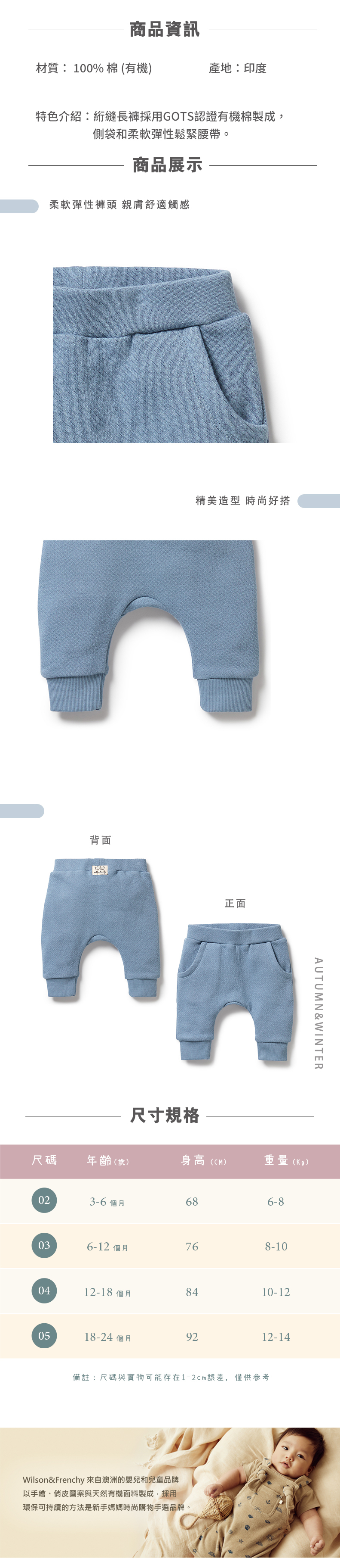 Wilson & Frenchy 嬰兒星空藍長袖長褲 W43-C01-03-BB-SB